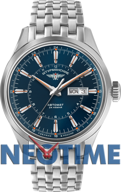 Функциональная модель мужских часов в классическом исполнении. Отличается стильной сине-серебристо-красной цветовой гаммой. Метки на циферблате накладные, выполнены в форме штрихов сложной формы. Помимо времени часы показывают также текущую дату и день недели. Стальной браслет с раскрывающейся застежкой отлично сочетается с синим циферблатом. Стальной корпус характеризуется повышенной прочностью и надежностью. На задней крышке размещен барельеф с изображением космонавта в открытом космосе.